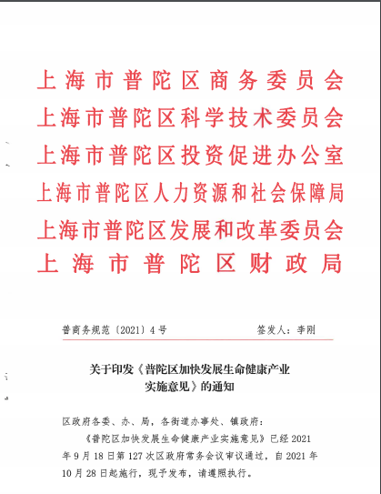普陀区加快发展生命健康产业实施意见