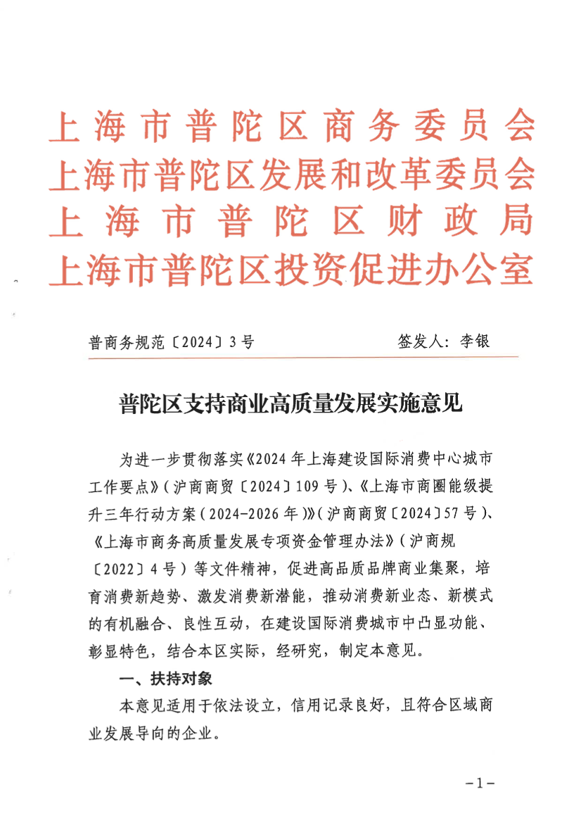 (五)其他支持普陀区商业创新发展、优化普陀消费环境等方面的商业企业。