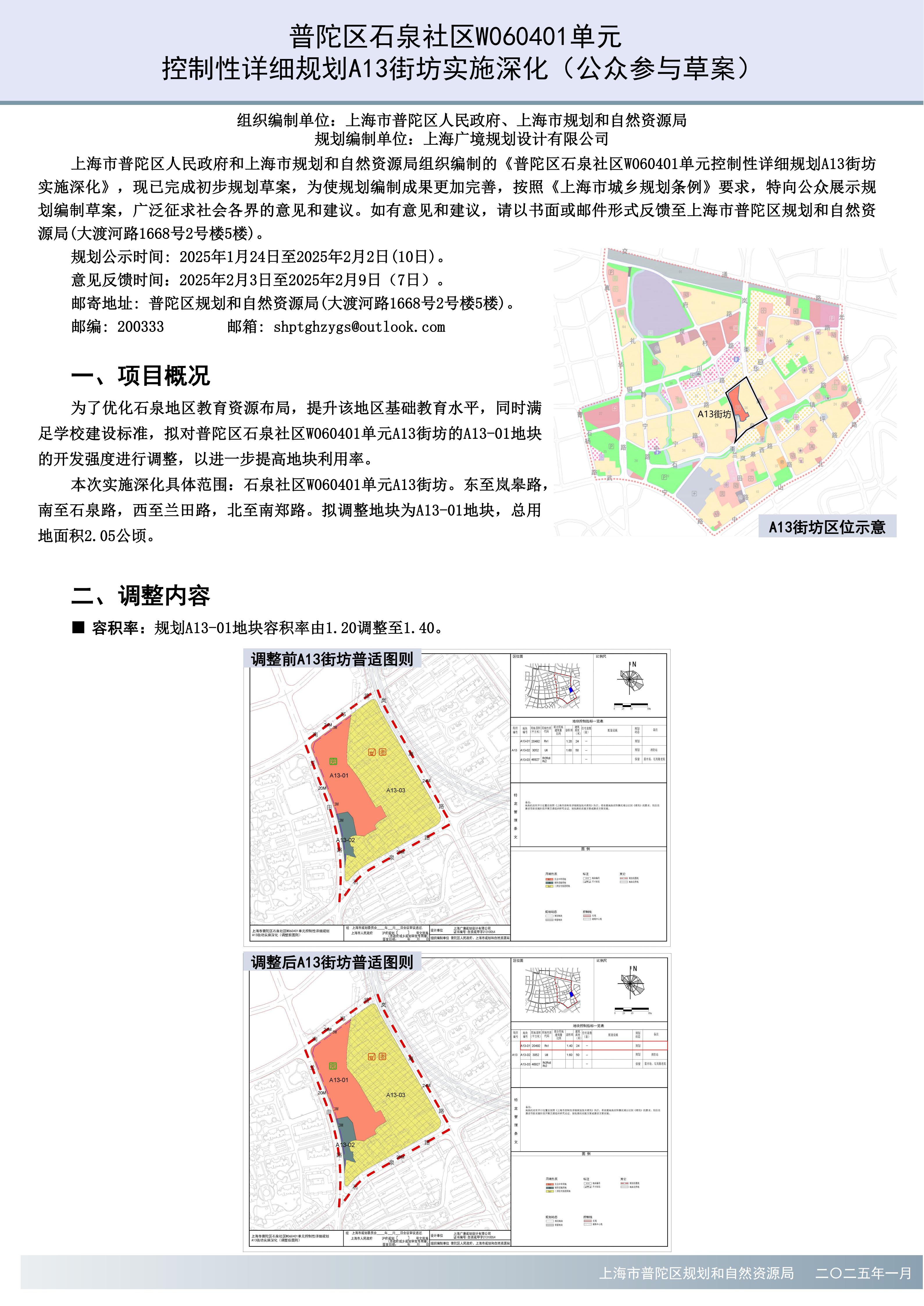 普陀区石泉社区W060401单元控制性详细规划A13街坊实施深化(公众参与草案)