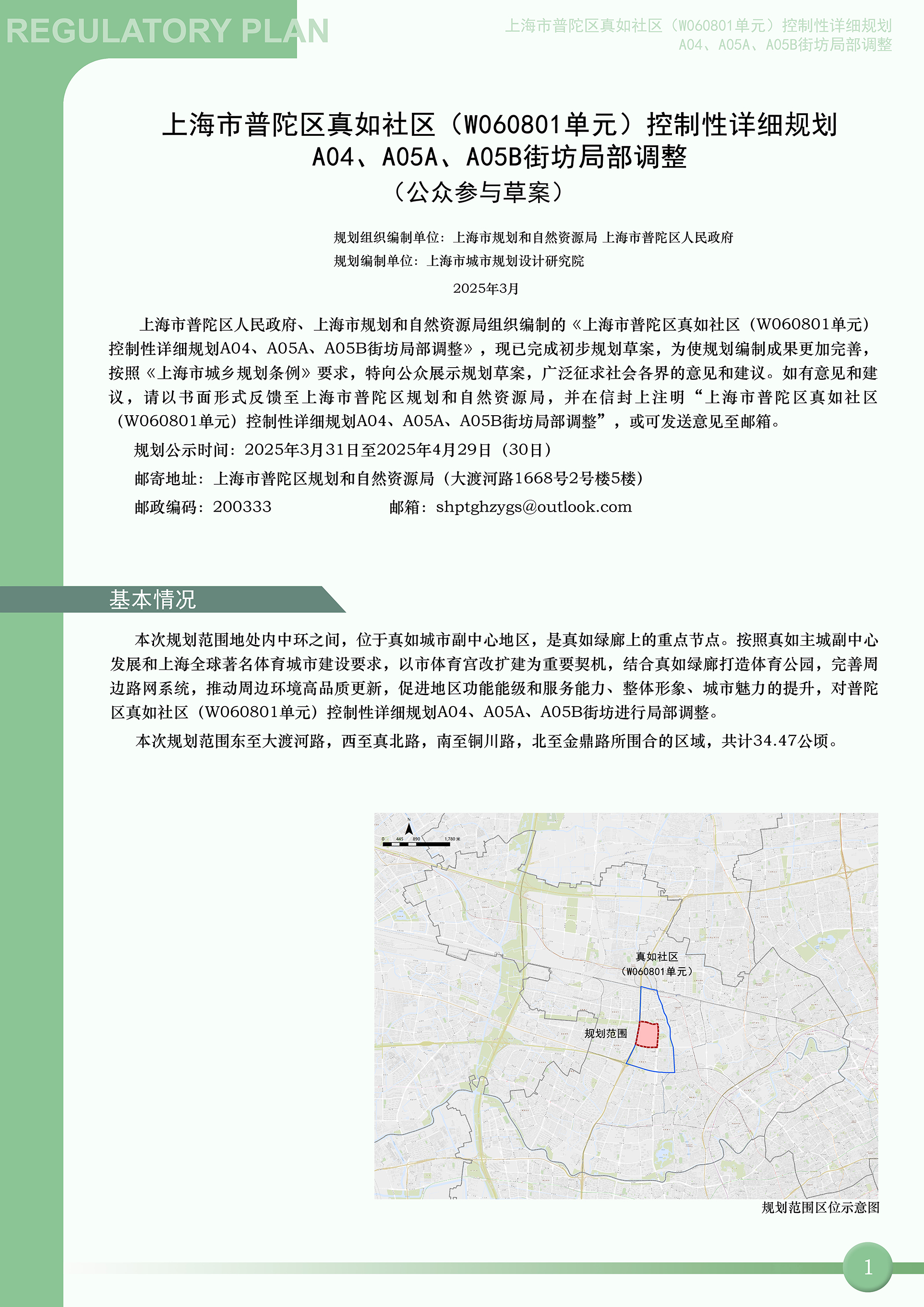 上海市普陀区真如社区(W060801单元)控制性详细规划A04、A05A、A05B街坊局部调整(公众参与草案)