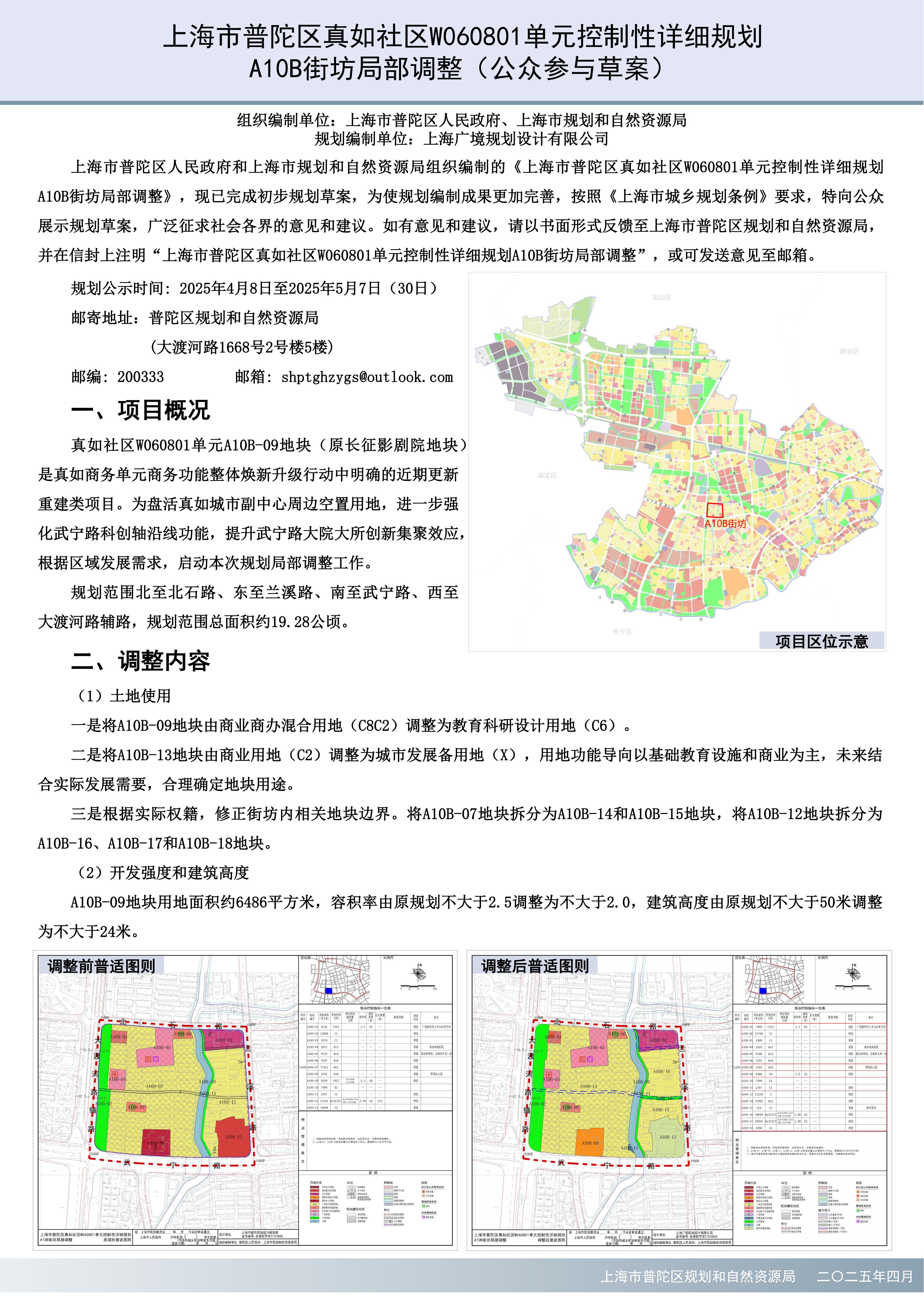 上海市普陀区真如社区W060801单元控制性详细规划A10B街坊局部调整(公众参与草案)