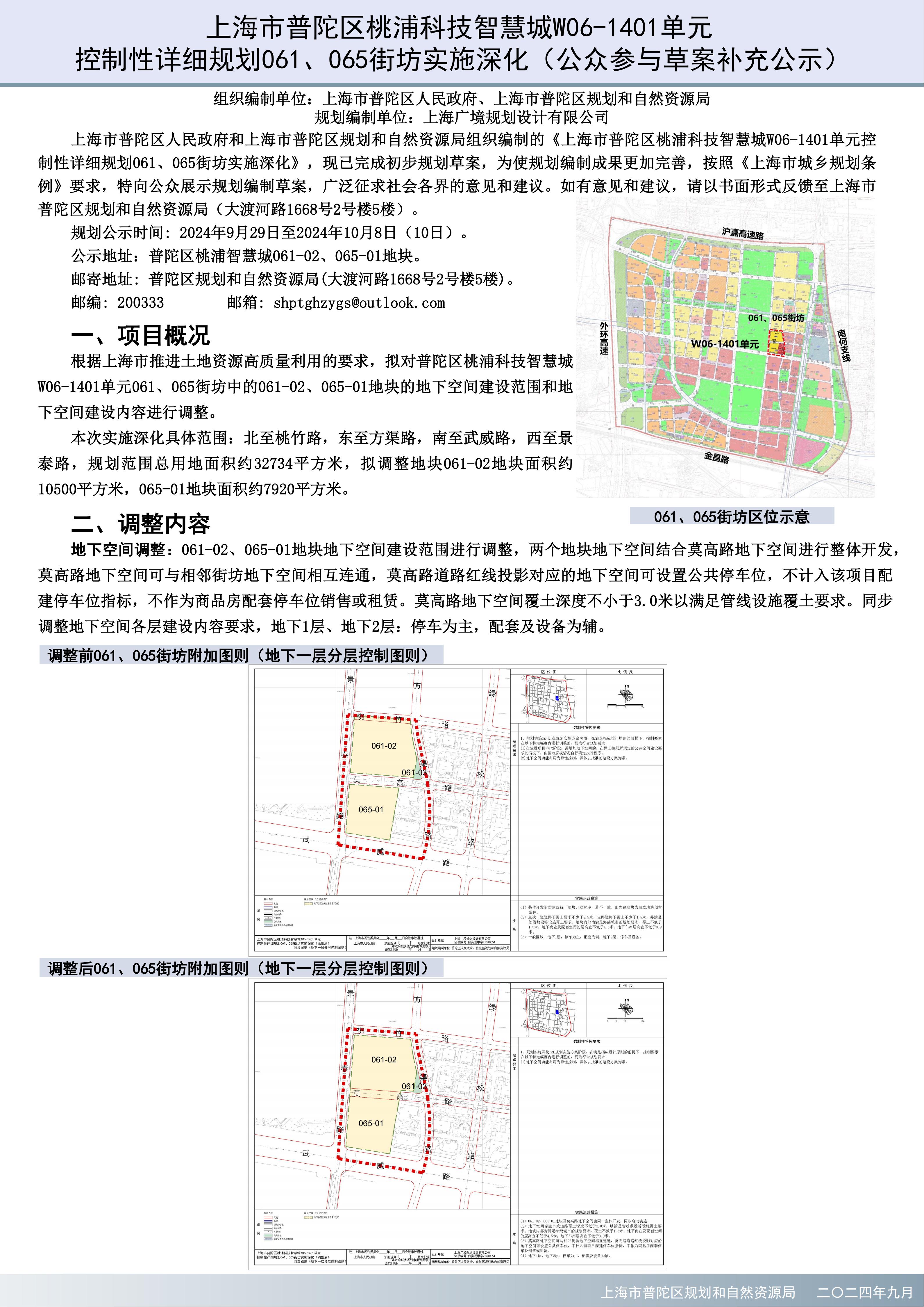 上海市普陀区桃浦科技智慧城W06-1401单元控制性详细规划061、065街坊实施深化(公众参与草案补充公示)