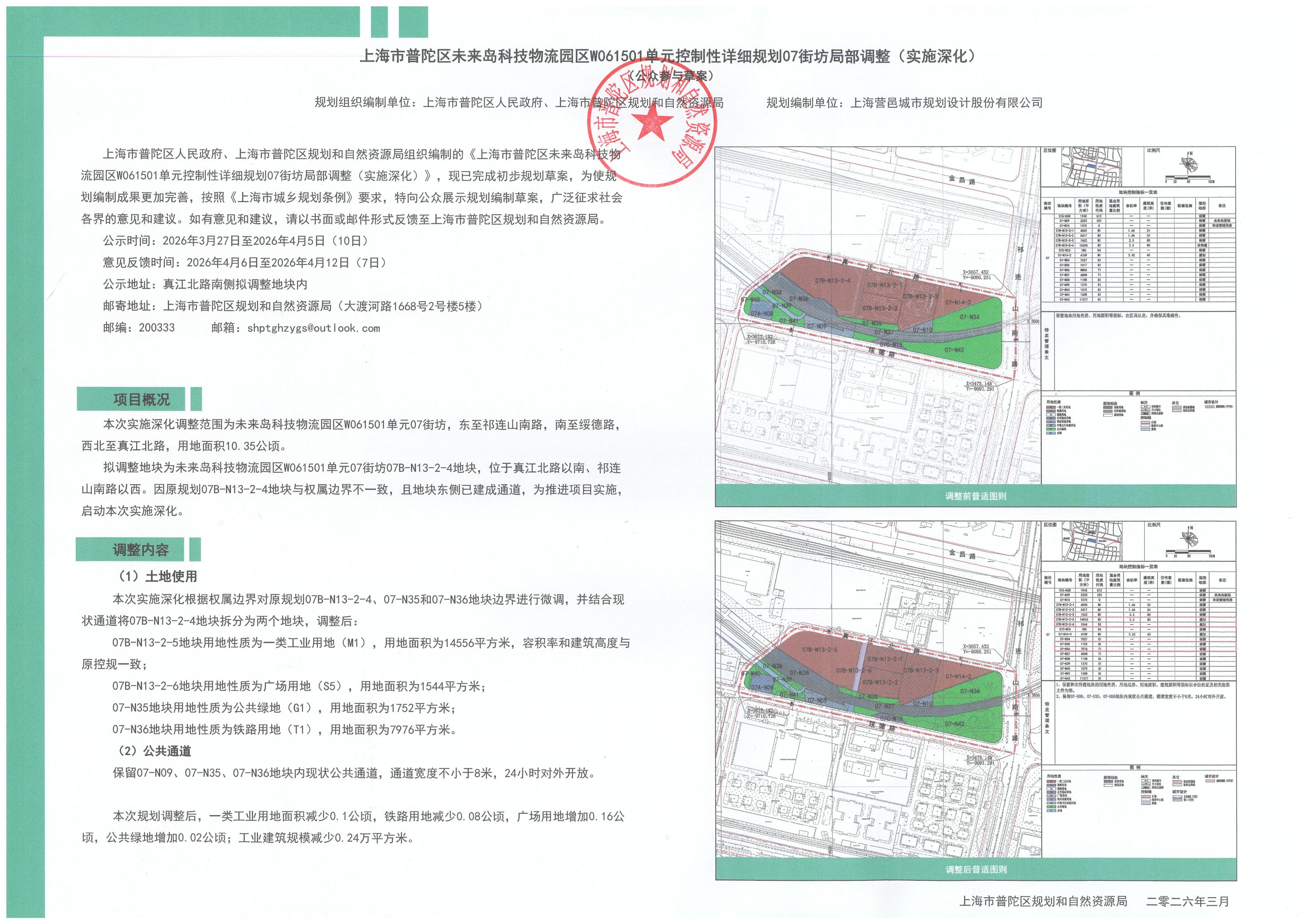 上海市普陀区未来岛科技物流园区W061501单元控制性详细规划07街坊局部调整(实施深化)(公众参与草案)