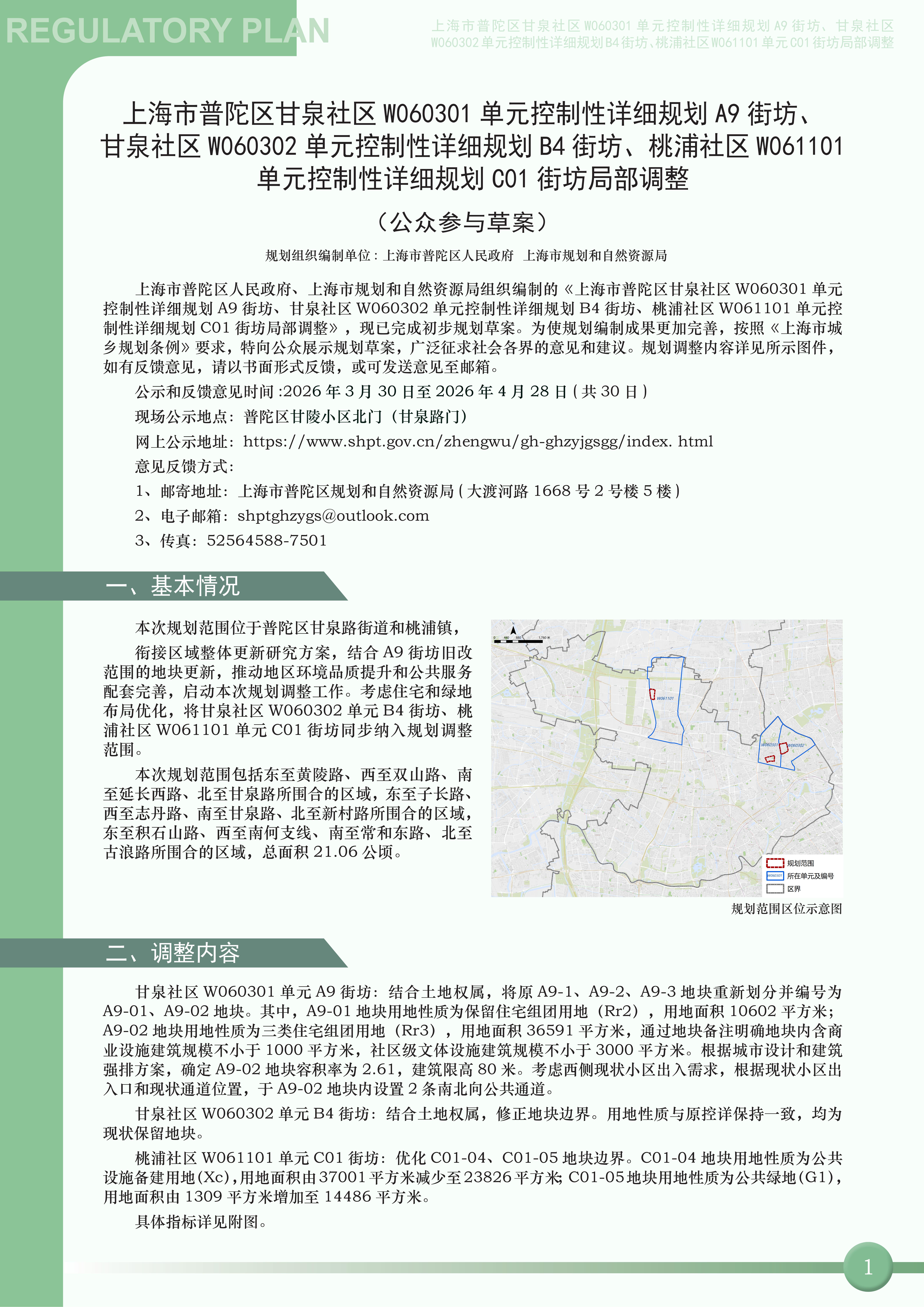 上海市普陀区甘泉社区W060301单元控制性详细规划A9街坊、甘泉社区W060302单元控制性详细规划B4街坊、桃浦社区W061101单元控制性详细规划C01街坊局部调整(公众参与草案).pdf