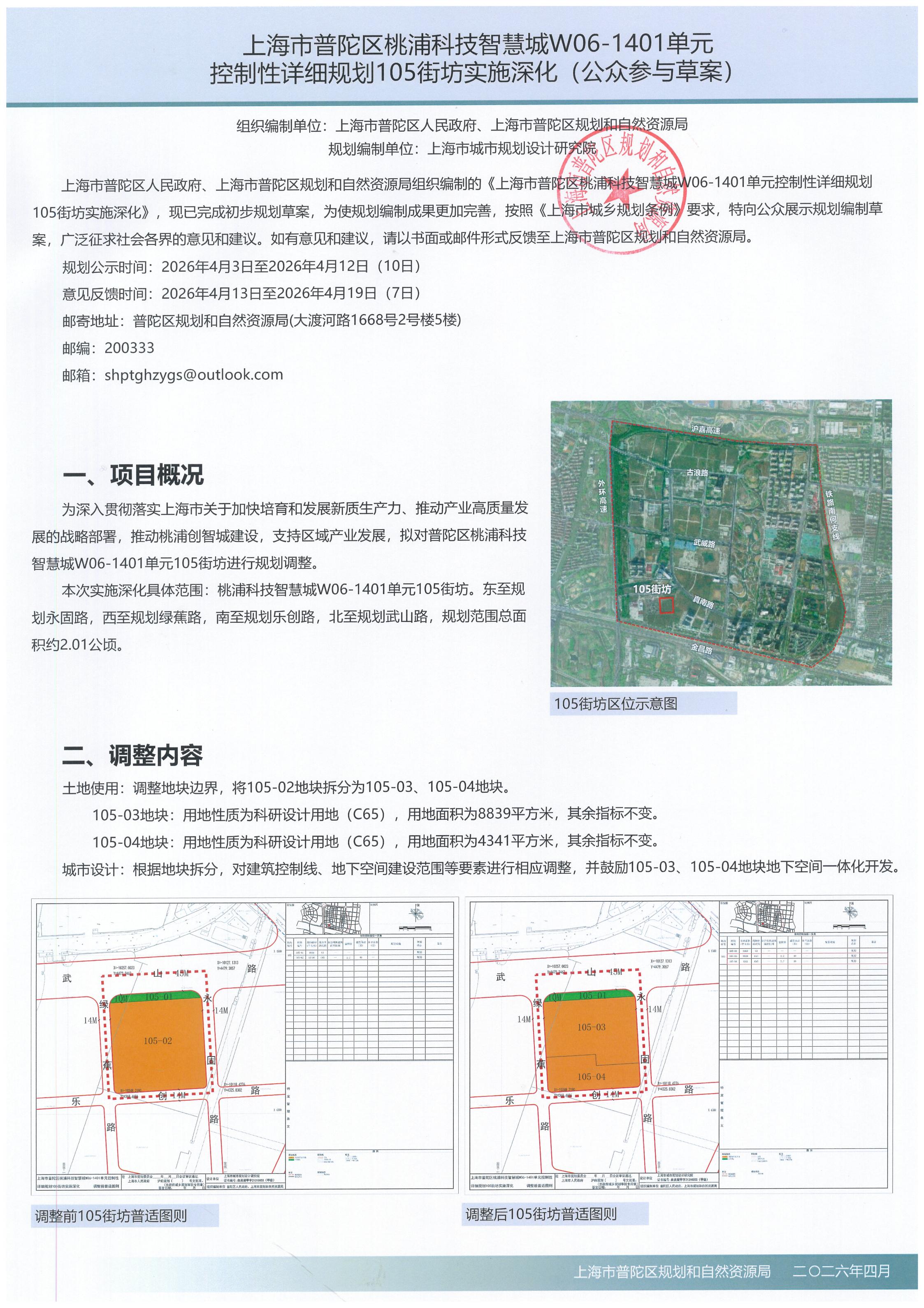 上海市普陀区桃浦科技智慧城W06-1401单元控制性详细规划105街坊实施深化(公众参与草案)