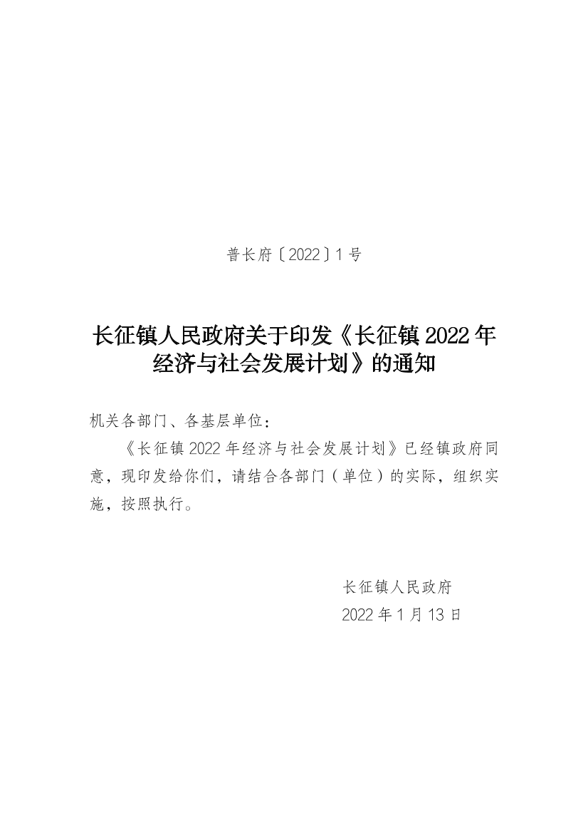 长征镇人民政府关于印发《长征镇2022年经济与社会发展计划》的通知