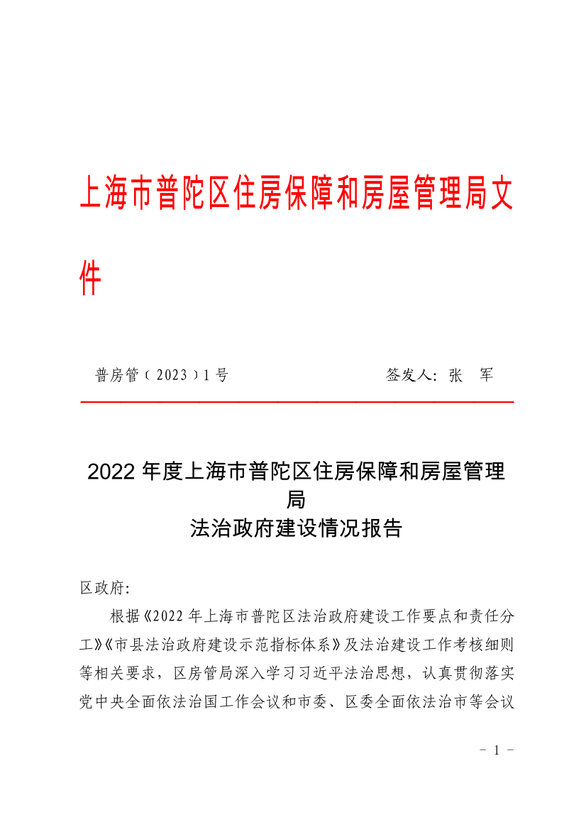 2022年度上海市普陀区住房保障和房屋管理局法治政府建设情况报告