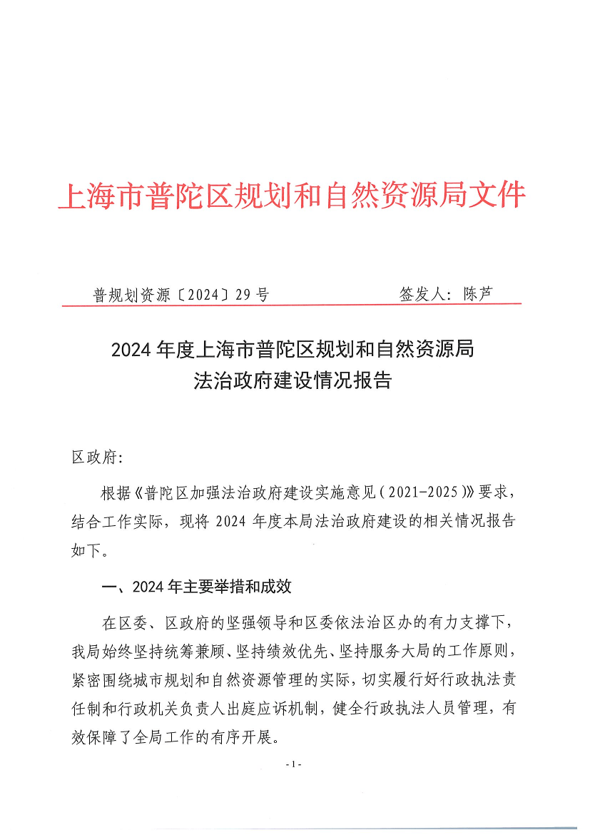 2024年度上海市普陀区规划和自然资源局法治政府建设情况报告