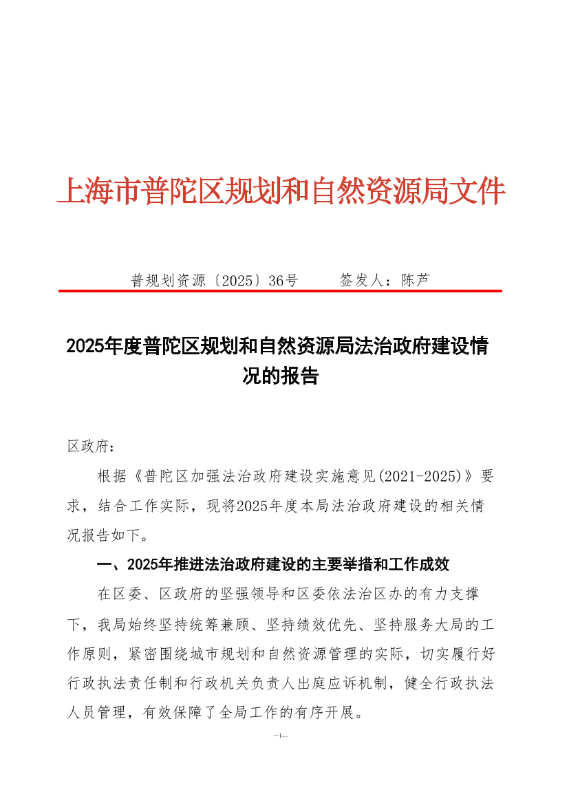 2025年度普陀区规划和自然资源局法治政府建设情况的报告