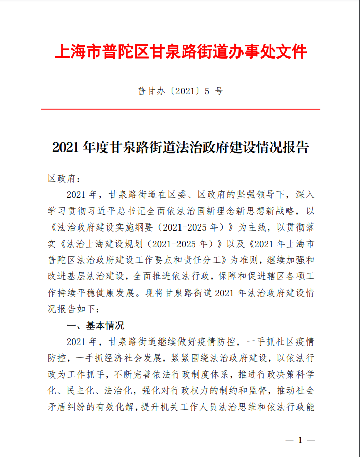 2021年度甘泉路街道法治政府建设情况报告
