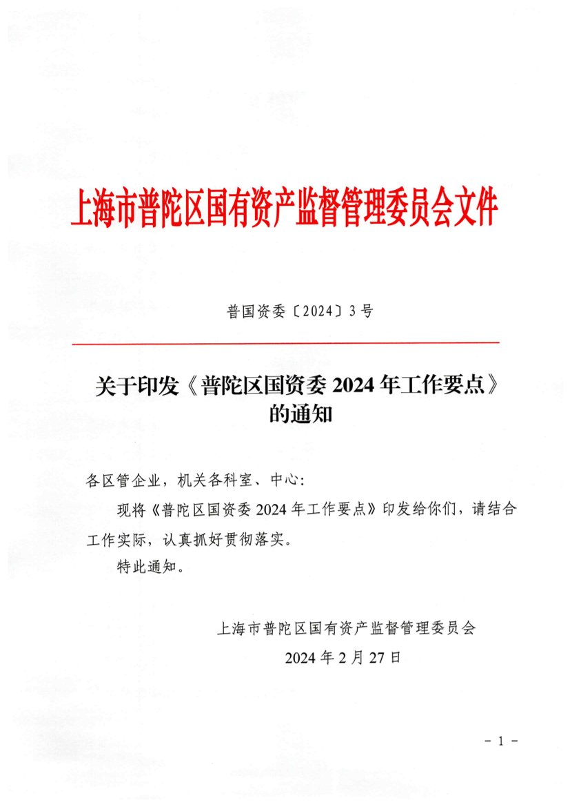 现将《普陀区国资委2024年工作要点》印发给你们,请结合工作实际,认真抓好贯彻落实。
