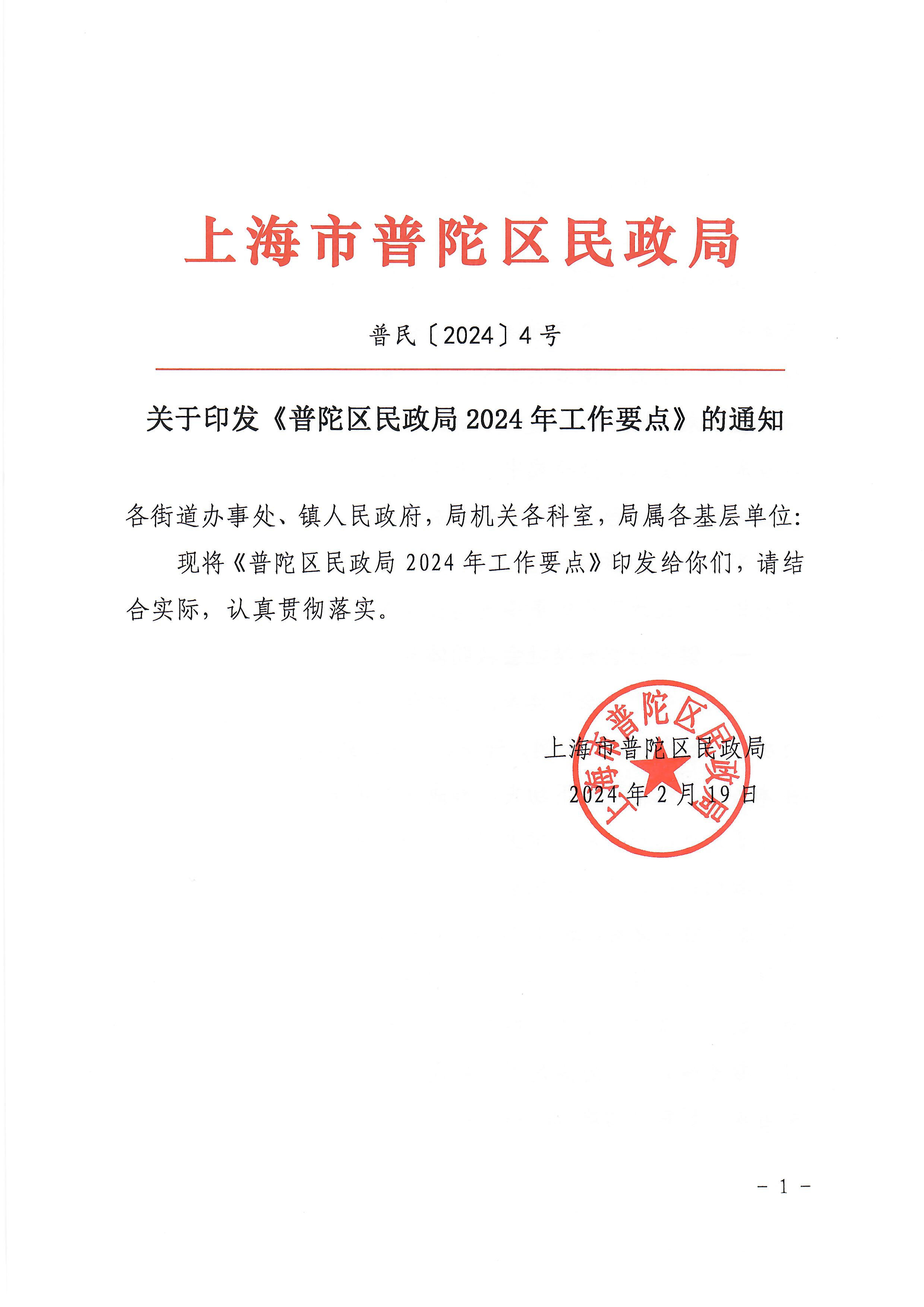 现将《普陀区民政局2024年工作要点》印发给你们,请结合实际,认真贯彻落实。