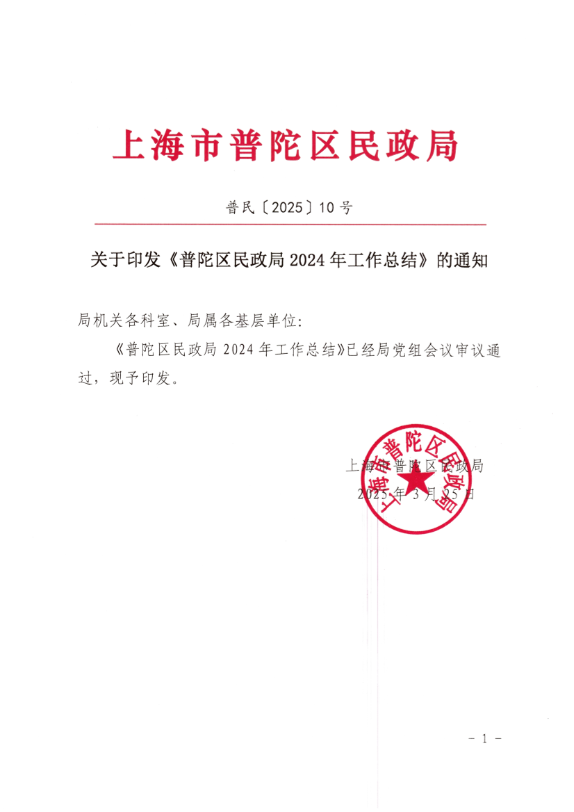 《普陀区民政局2024年工作总结》已经局党组会议审议通过,现予印发。