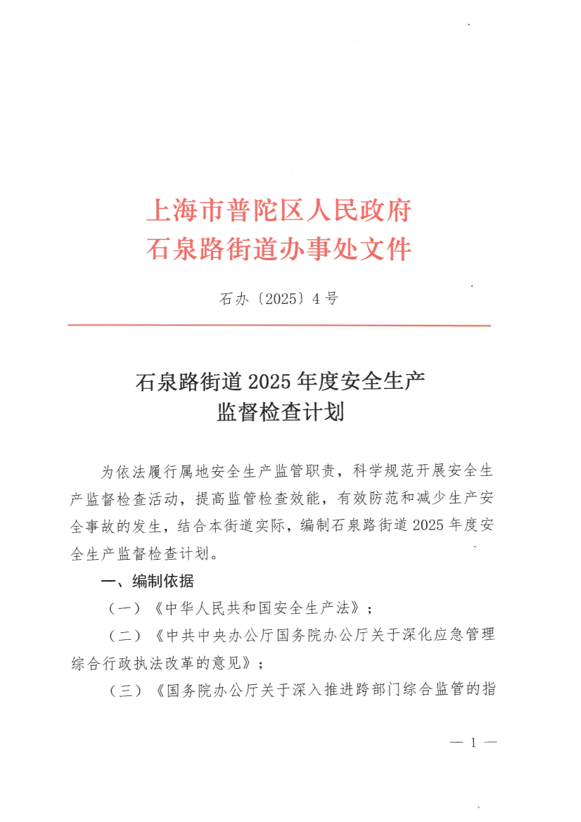 为依法履行属地安全生产监管职责,科学规范开展安全生产监督检查活动,提高监管检查效能,有效防范和减少生产安全事故的发生,结合本街道实际,编制石泉路街道2025年度安全生产监督检查计划。