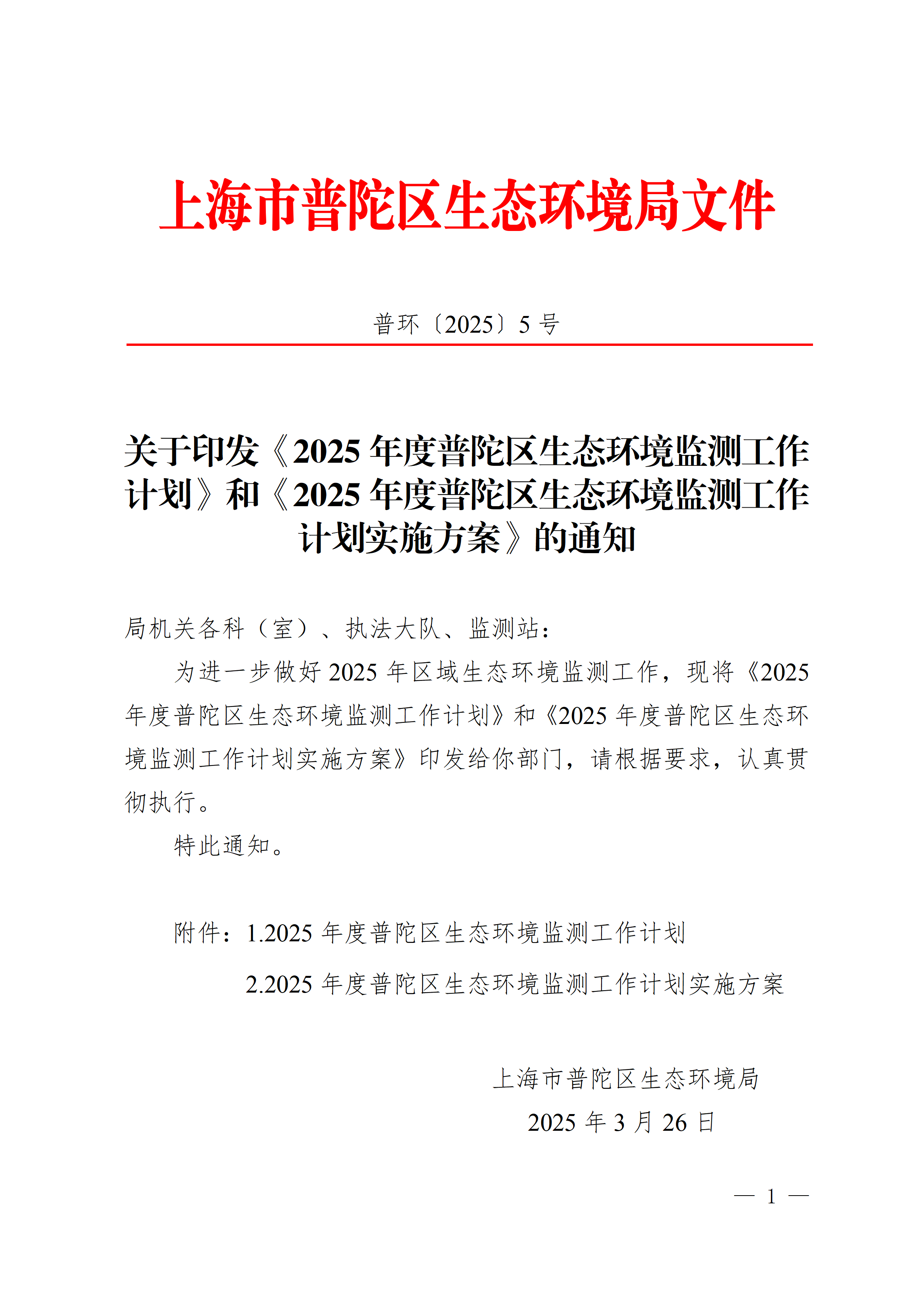关于印发《2025年度普陀区生态环境监测工作计划》和《2025年度普陀区生态环境监测工作计划实施方案》的通知