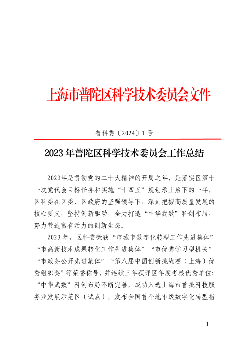 2023年,区科委荣获“市城市数字化转型工作先进集体”“市高新技术成果转化工作先进集体”“市优秀学习型机关”“市政务公开先进集体”“第八届中国创新挑战赛(上海)优秀组织奖”等荣誉称号,并连续三年获评区年度考核优秀单位;“中华武数”科创布局不断完善,成功入选上海市首批科技服务业发展示范区(试点),发布全国首个地市级数字化转型指数;智能软件、研发服务两大产业合计实现区税24.76亿元,占区税比重24.92%,较上年同期提高2.03个百分点;完成首次认定高新技术企业67家,超额完成力争65家的年度目标任务;全年招商引进企业共计产税35238.25万元,区税10594万元。