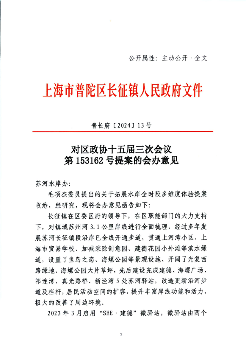 毛项杰委员提出的关于拓展水岸全时段多维度体验提案收悉,经研究,现将会办意见函告如下: