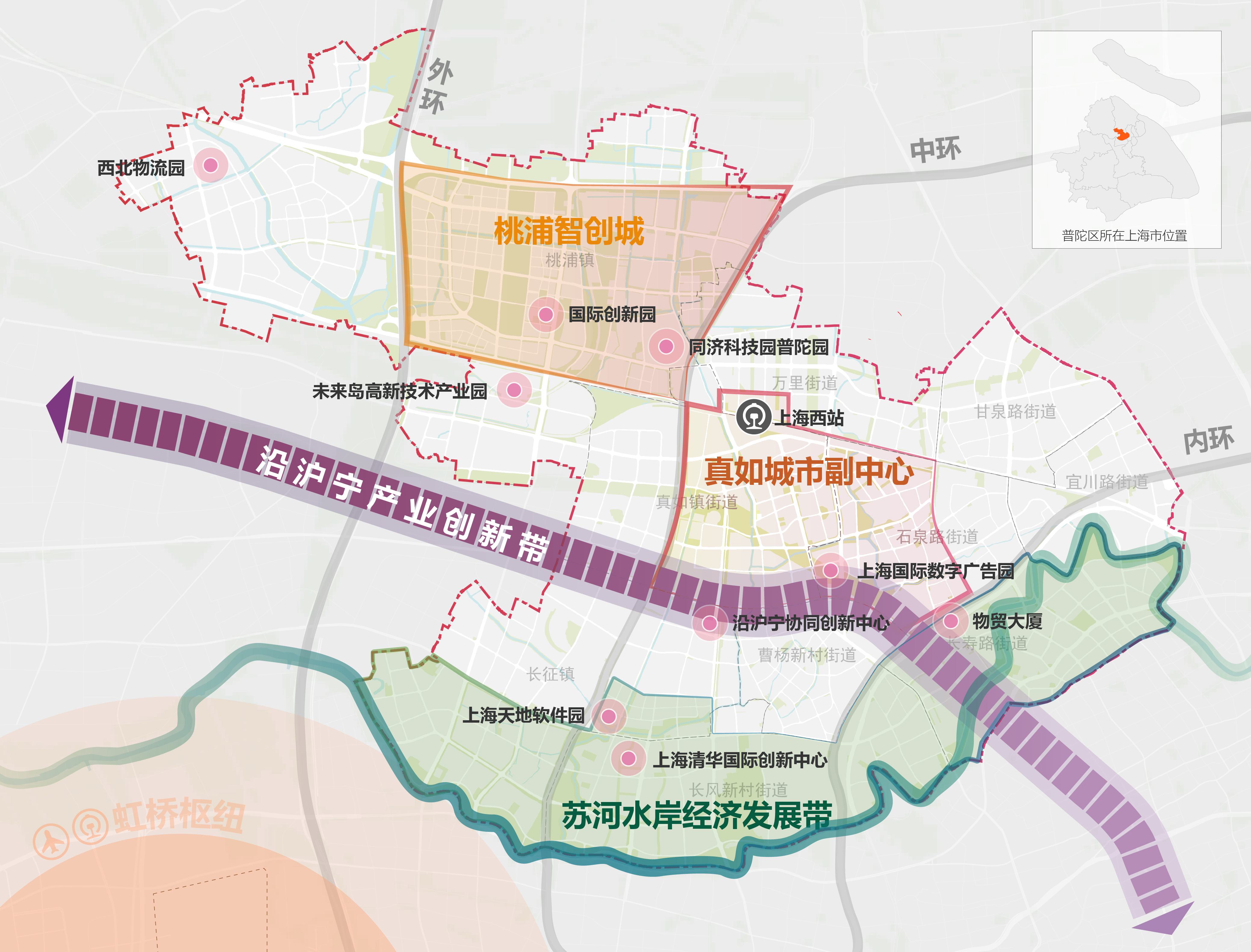 专栏1:“协同创新活力区、半马苏河品质区”功能定位 “协同创新活力区”突出体现了普陀在更大格局中谋划发展的战略视野。“协同”二字强调了主动融入、联动发展的取向,体现普陀以服务沿沪宁产业创新带建设,引领带动“一带一心一城”发展的鲜明导向,旨在通过区域协同、创新协同、产业协同,全面激发区域发展的内生动力与外联效应。“半马苏河品质区”深深扎根于普陀的独特禀赋与民生根本。“半马苏河”作为普陀极具辨识度的滨水空间与文化名片,承载着城市更新的记忆、生态宜居的愿景与文化传承的使命。以“半马苏河”赋能“品质区”建设,将城区形象塑造、生态价值提升与民生福祉增进紧密联结,体现了普陀打造宜居、安居、美居、乐居的现代化城区的庄严承诺。 新“两区”功能定位在守正创新中延续与升华,既继承了“十四五”时期“创新发展活力区、美好生活品质区”的核心内涵,保留了“创新”“活力”“品质”等关键价值追求,又通过“协同创新”“半马苏河”等新表述,更加凸显普陀特色、凝聚普陀愿景,两者相辅相成、有机融合,共同为普陀的明天绘就了一幅创新驱动、河清岸美、宜居宜业的高质量发展新画卷。 |