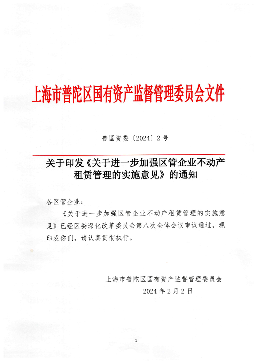 进一步强化落实区管企业不动产租赁管理主体责任,健全完善不动产租赁分类管理体系,规范不动产出租工作流程,提升不动产租赁效益与管理水平。促进区管企业不动产租赁工作更加公开透明、合法规范,推动区管企业实现高质量发展。