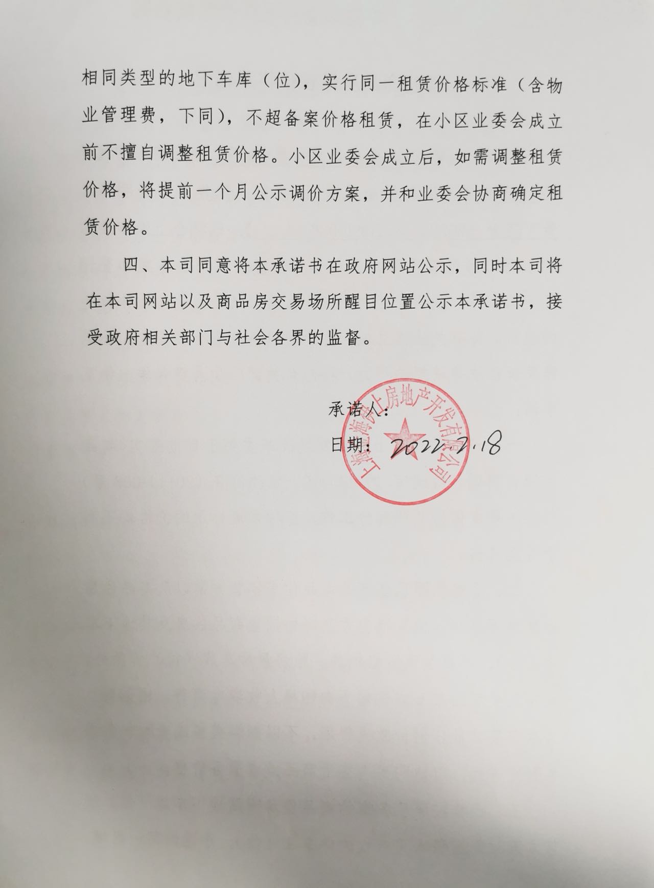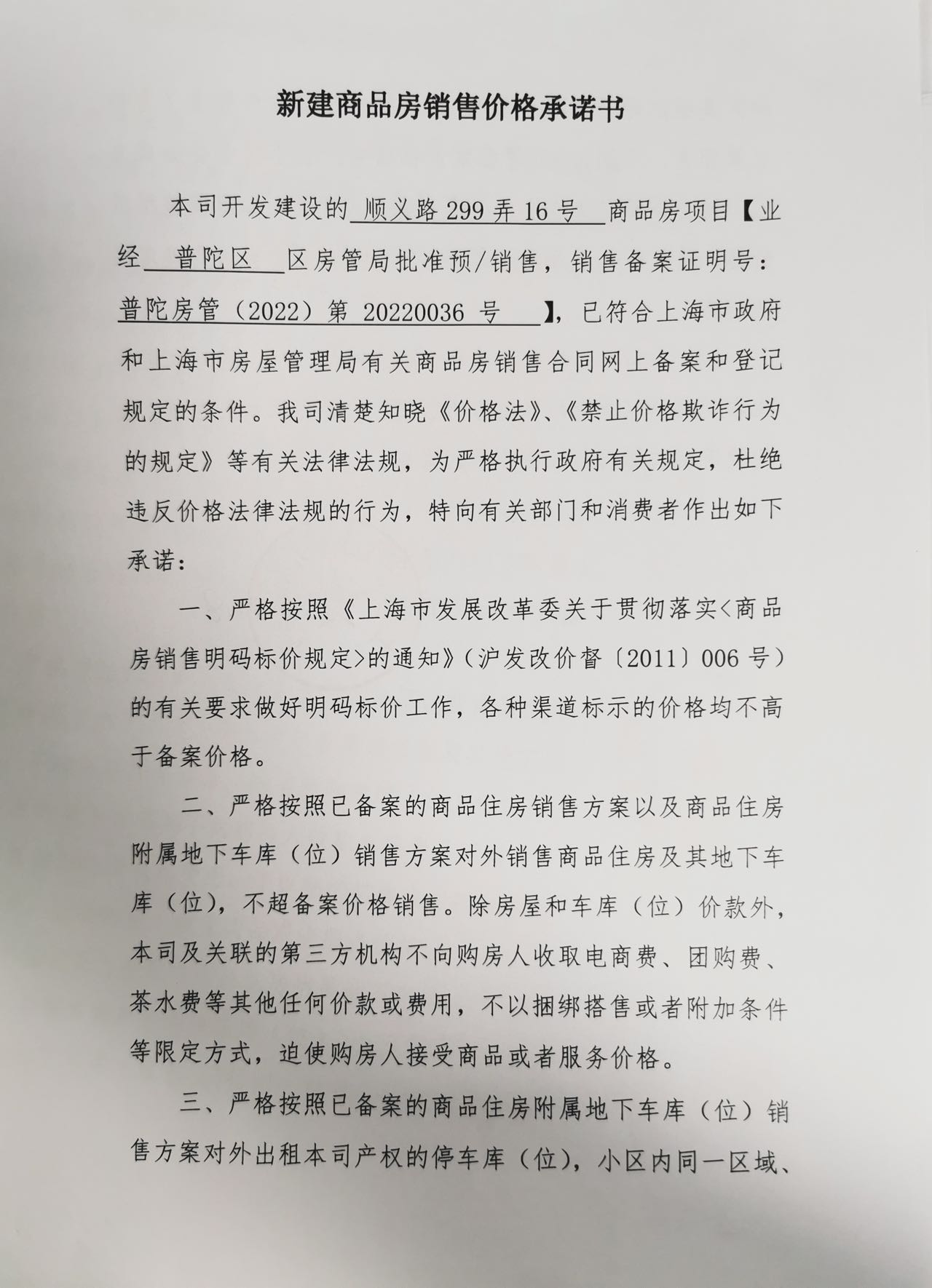 新建商品房销售价格承诺书(顺义路299弄16号)