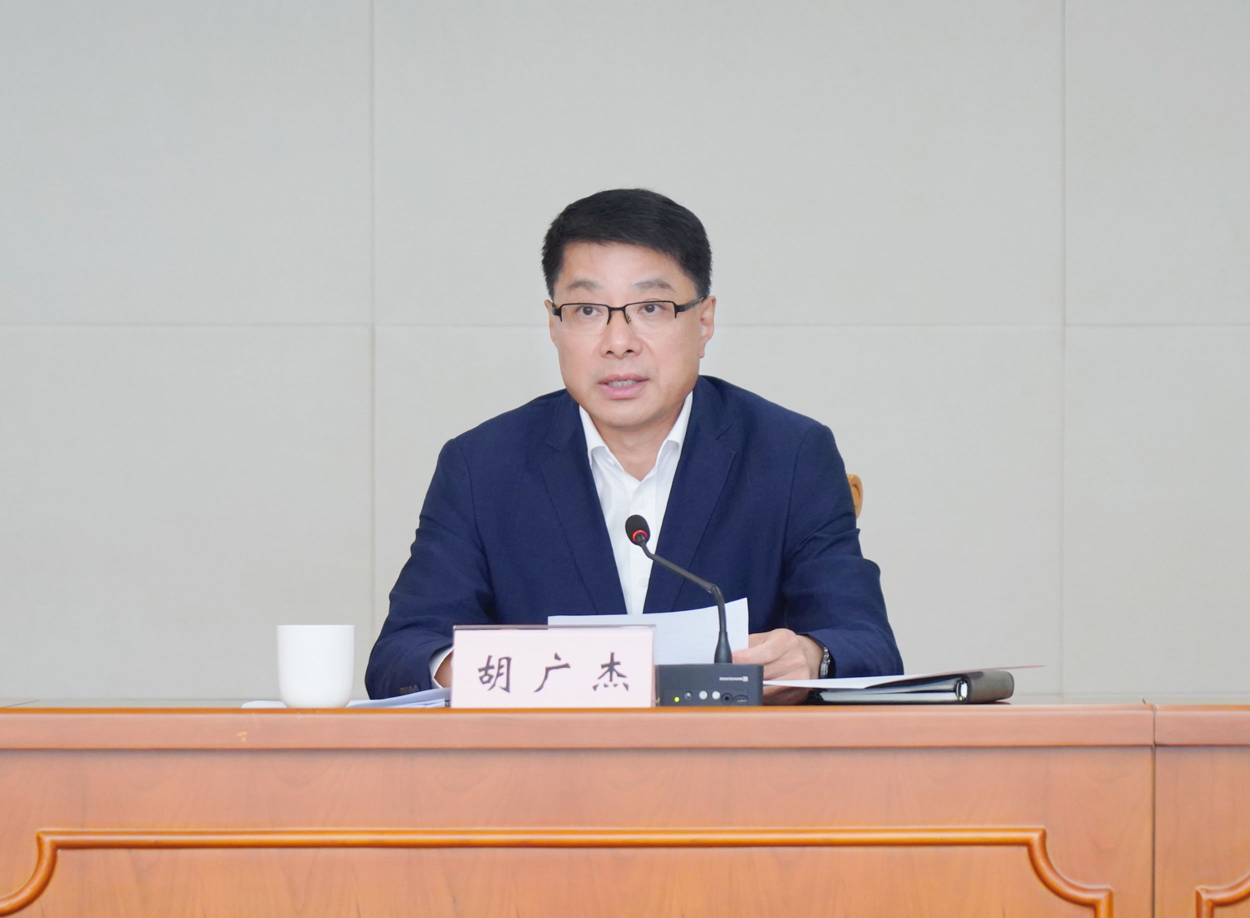 胡广杰代表普陀区委、区政府作工作汇报并表态发言。他指出,市级生态环境保护督察既是一次全面体检,更是推动普陀生态环境、城区品质、基层治理再上新台阶的宝贵机遇。普陀区将全力配合好市督察组工作,以更高站位扛起责任,深刻认识环保督察重要意义,坚决扛牢生态保护政治责任;以更强担当主动作为,全力落实环保督察重要要求,确保贯彻执行“零折扣”、责任落实“零缝隙”、服务保障“零缺位”;以更实举措狠抓整改,切实推动环保督察落地见效,扎实做好督察整改“后半篇文章”。