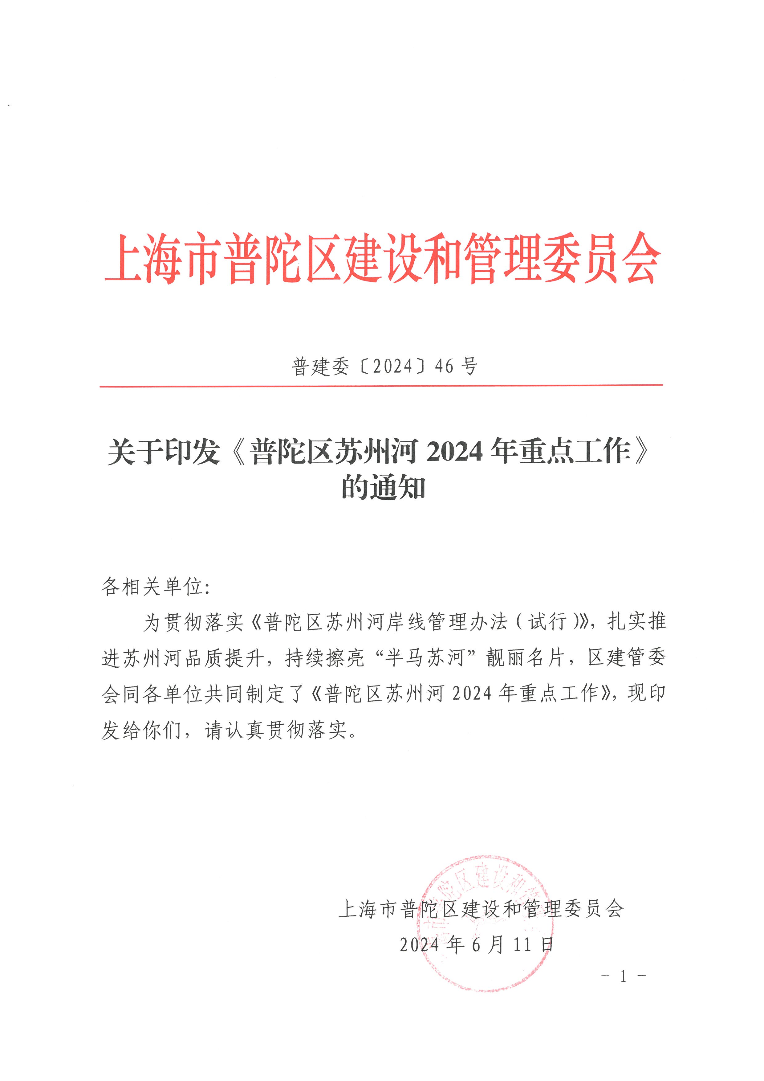 关于印发《普陀区苏州河2024年重点工作》的通知