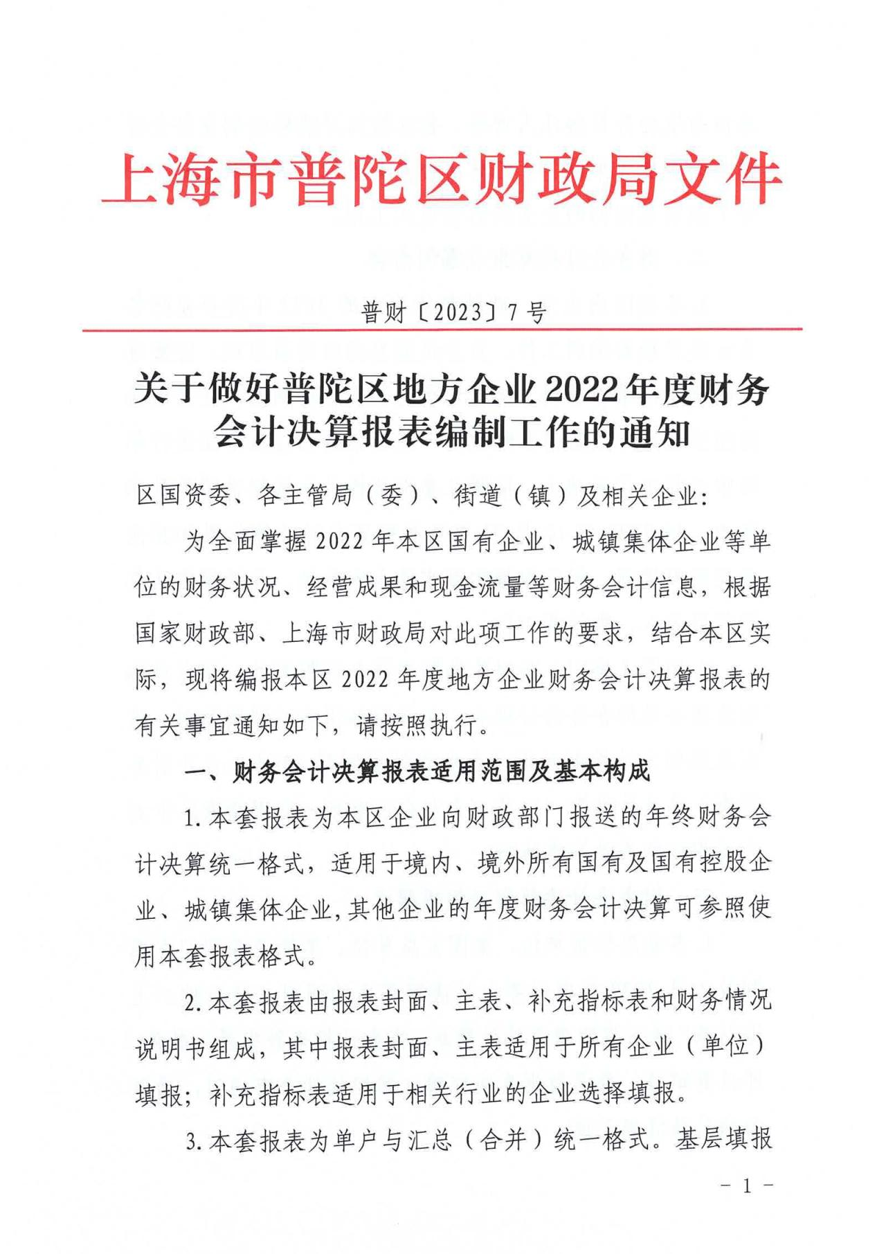 关于做好普陀区地方企业2022年度财务会计决算报表编制工作的通知