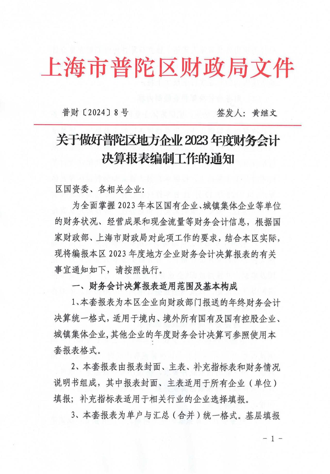 关于做好普陀区地方企业2023年度财务会计决算报表编制工作的通知