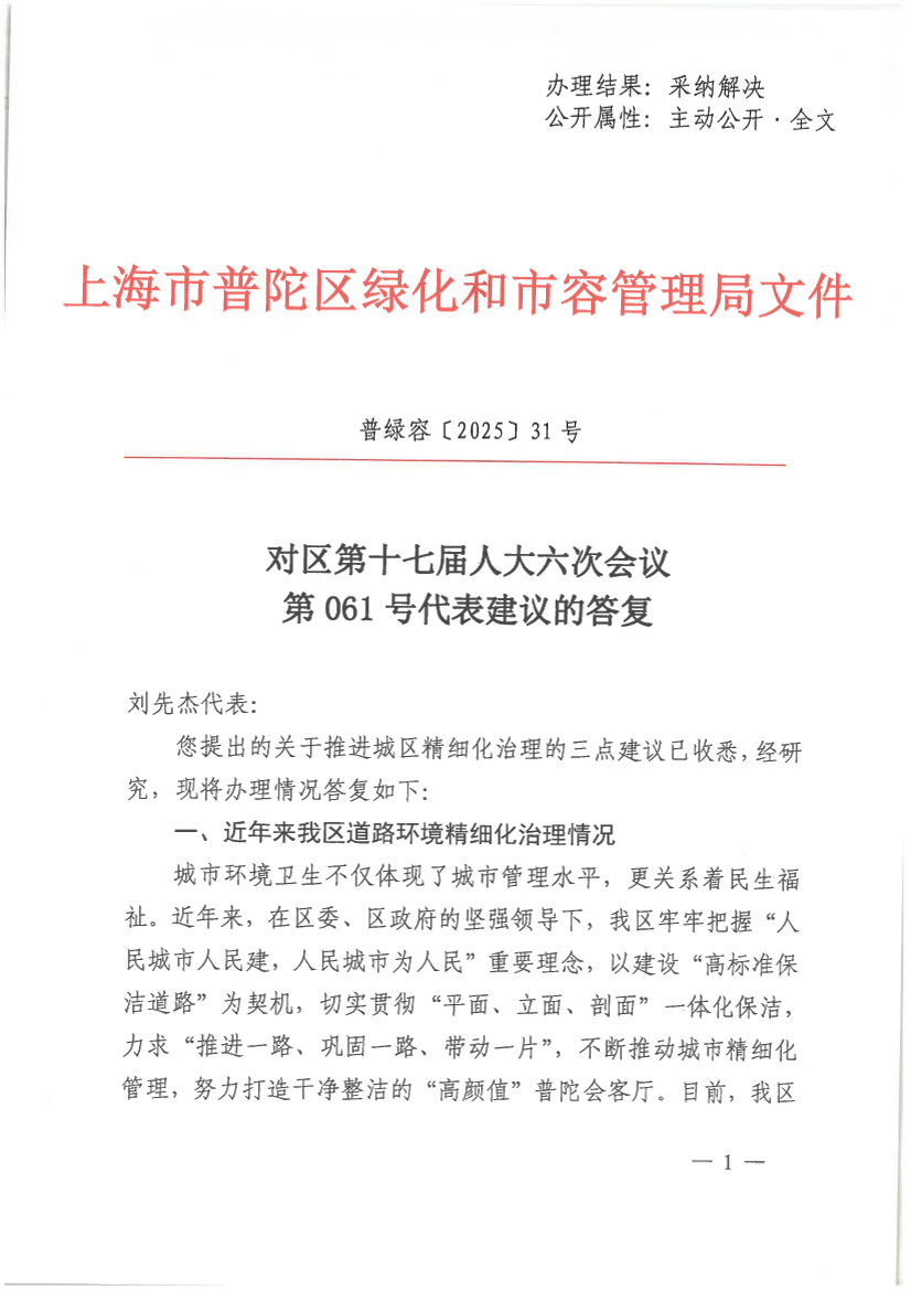 建议一“职能部门或单位加大清扫的频次和力度”。针对您提到的“脏、乱、差”情况,区绿化市容局已要求环卫作业企业严格按照《上海市道路、公共广场保洁质量与作业规范》要求,全面提升道路保洁精细化水平。通过合理安排作业时间和人员配置,确保主次干道、商业大街等公共区域的清洁卫生。下一步,区绿化市容局将从三方面,继续提升道路保洁质量和管理水平。一是巩固高标准保洁区域(道路)建设。我区22处高标准保洁区域(道路)均已实施“机械清扫+人工精扫”双覆盖模式,确保每日机械化清扫频次不低于3次,垃圾滞留时间控制在15分钟内。二是继续强化中小道路整治。今年,我区将根据道路污染情况,继续开展薄弱路段专项攻坚行动,通过增配保洁人员、优化作业时段、强化动态巡查等措施,重点整治路面油污、小包垃圾落地等问题,实施销项式管理。三是开展城市清洁行动。在每月15日左右,开展清死角、消盲区、大冲洗城市清洁行动,因地制宜对区域内道路环境进行全流程、全要素、全方位的精细化管理,消除盲区、洼地、死角,做到路面清、人行道清、沟底清、墙角清、树根清、隔离障清。