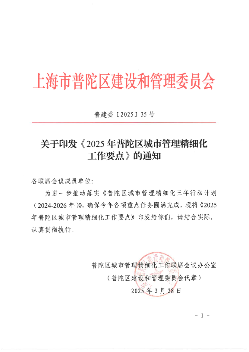 关于印发《2025年普陀区城市管理精细化工作要点》的通知