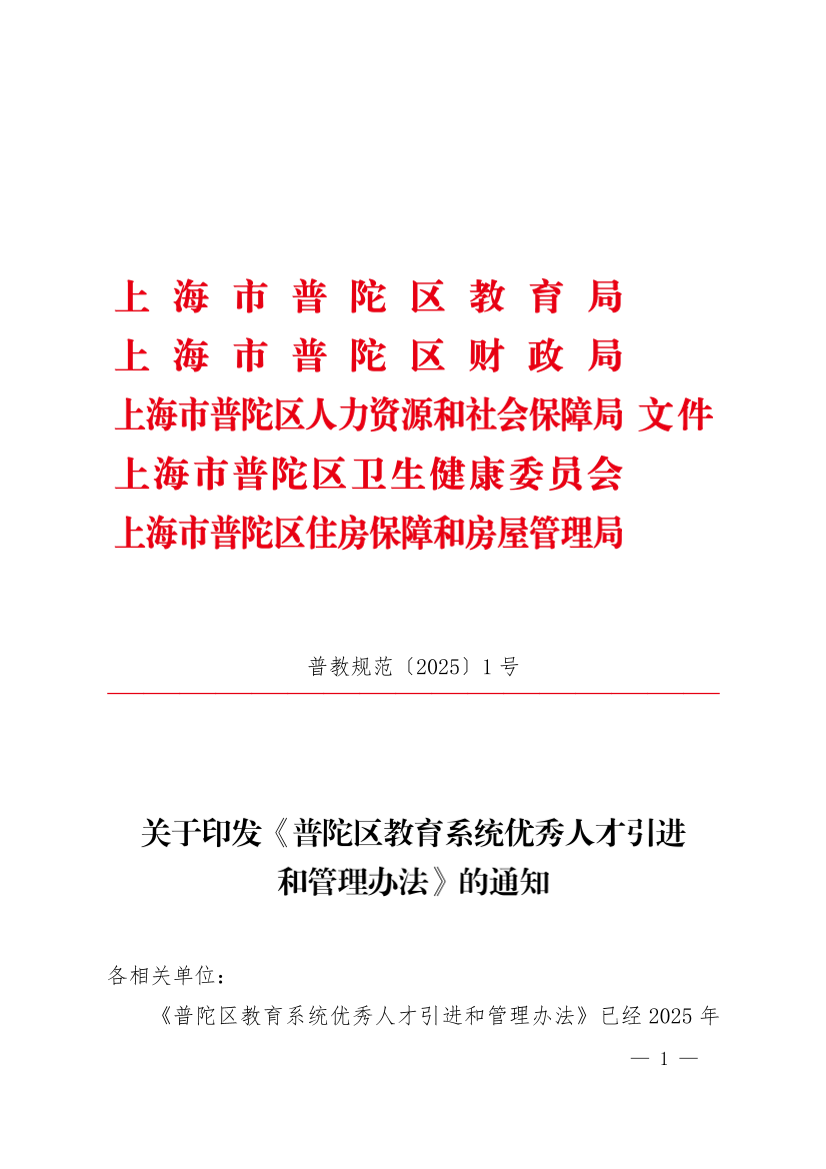 《普陀区教育系统优秀人才引进和管理办法》已经2025年12月3日第99次区政府常务会议审议通过,现予发布,请遵照执行。