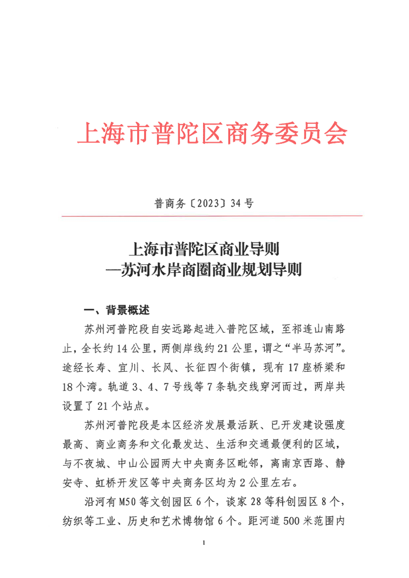根据商务部发布的《城市商圈建设指南(征求意见稿)》和《上海市商业空间布局专项规划(2021—2035年)》规定和要求,对苏州河普陀段商圈规划提出以下原则。