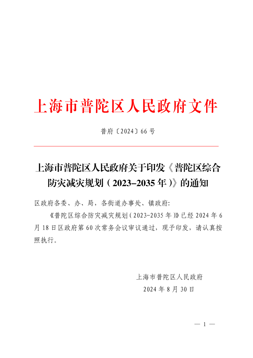 上海市普陀区人民政府关于印发《普陀区综合防灾减灾规划(2023-2035年)》的通知