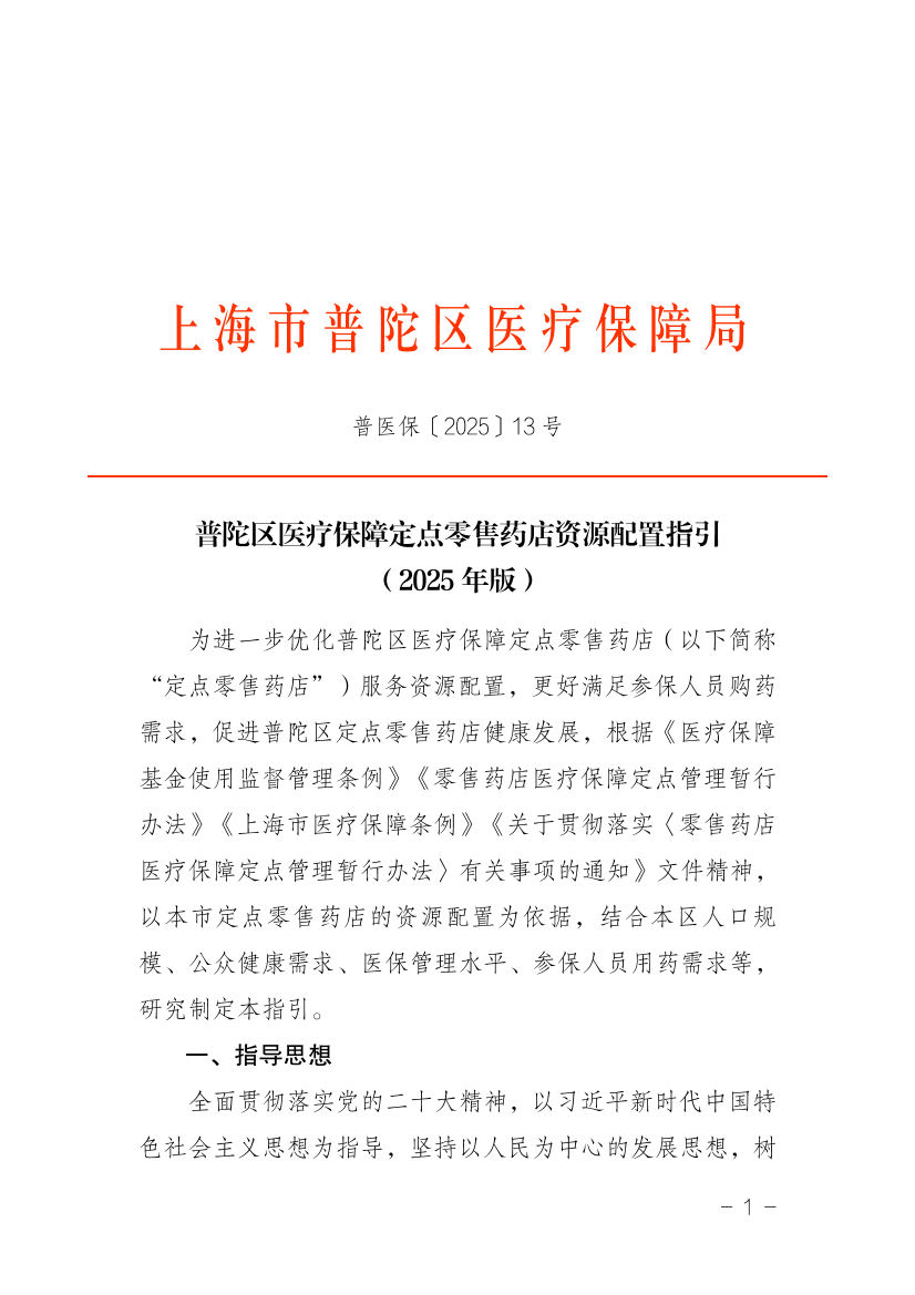 普陀区医疗保障定点零售药店资源配置指引 (2025年版)