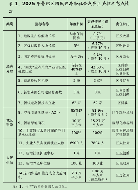 2025年12月02日 来源: 上海普陀一、2025年国民经济和社会发展计划执行情况