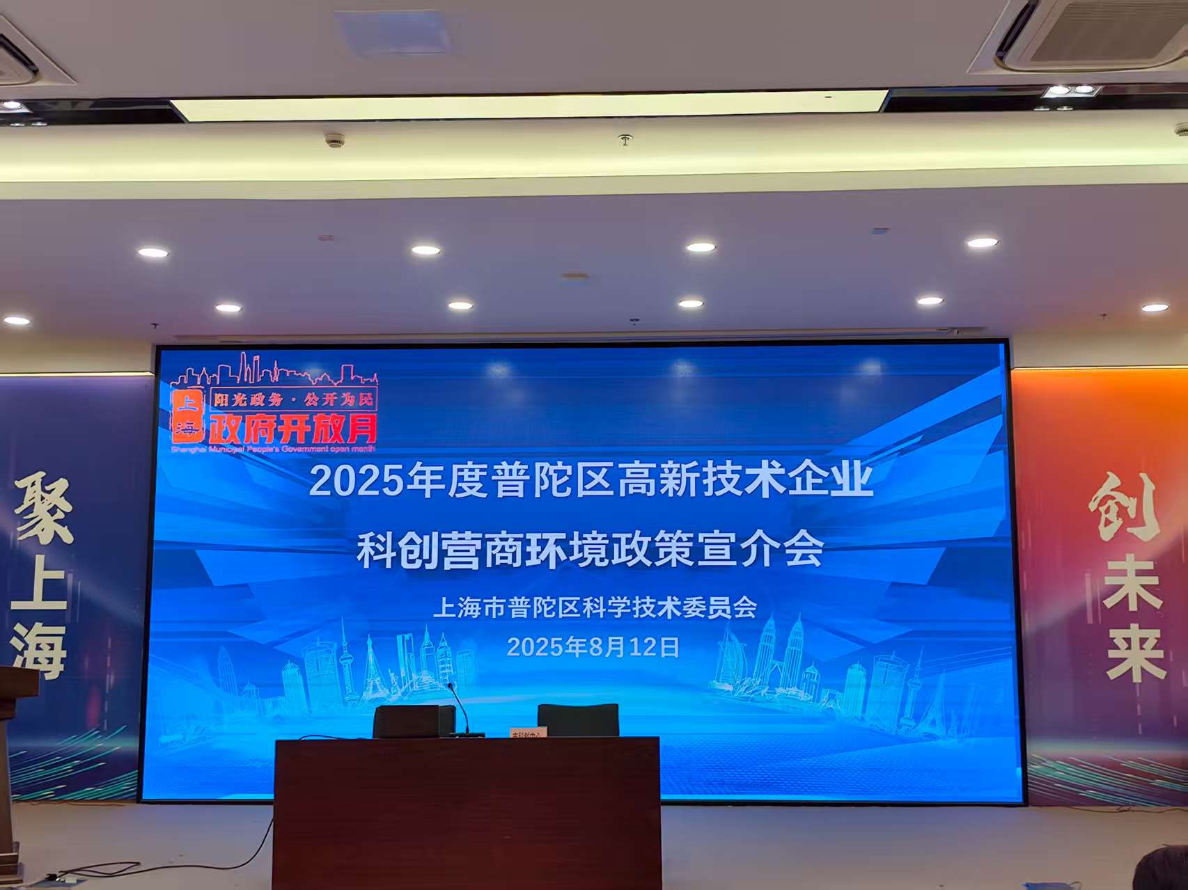 8月12日,2025年普陀区第六场高新技术企业科创营商环境政策宣介会在天地科技广场成功举办,吸引了区内近百家企业代表参加。通过政策解读、案例分享和互动答疑,为企业提供“一站式”政策服务,进一步释放政策红利,激发创新活力。