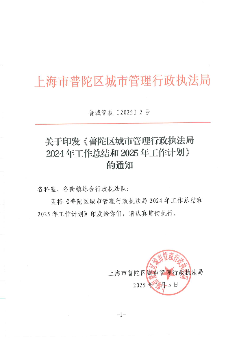 普城管执(2025)2号关于印发《普陀区城市管理行政执法局2024年工作总结和2025年工作计划》的通知.doc