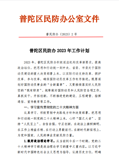 普陀区民防办2023年工作计划
