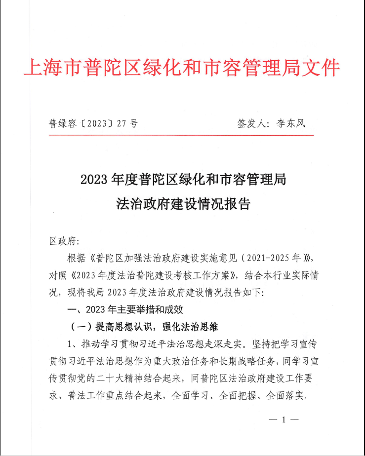 2023年度普陀区绿化和市容管理局法治政府建设情况报告