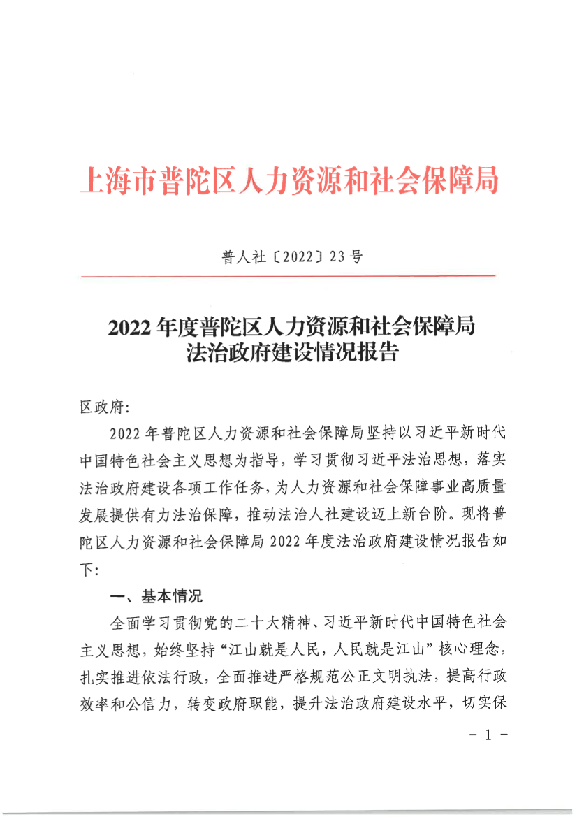 2022年度普陀区人力资源和社会保障局法治政府建设情况报告