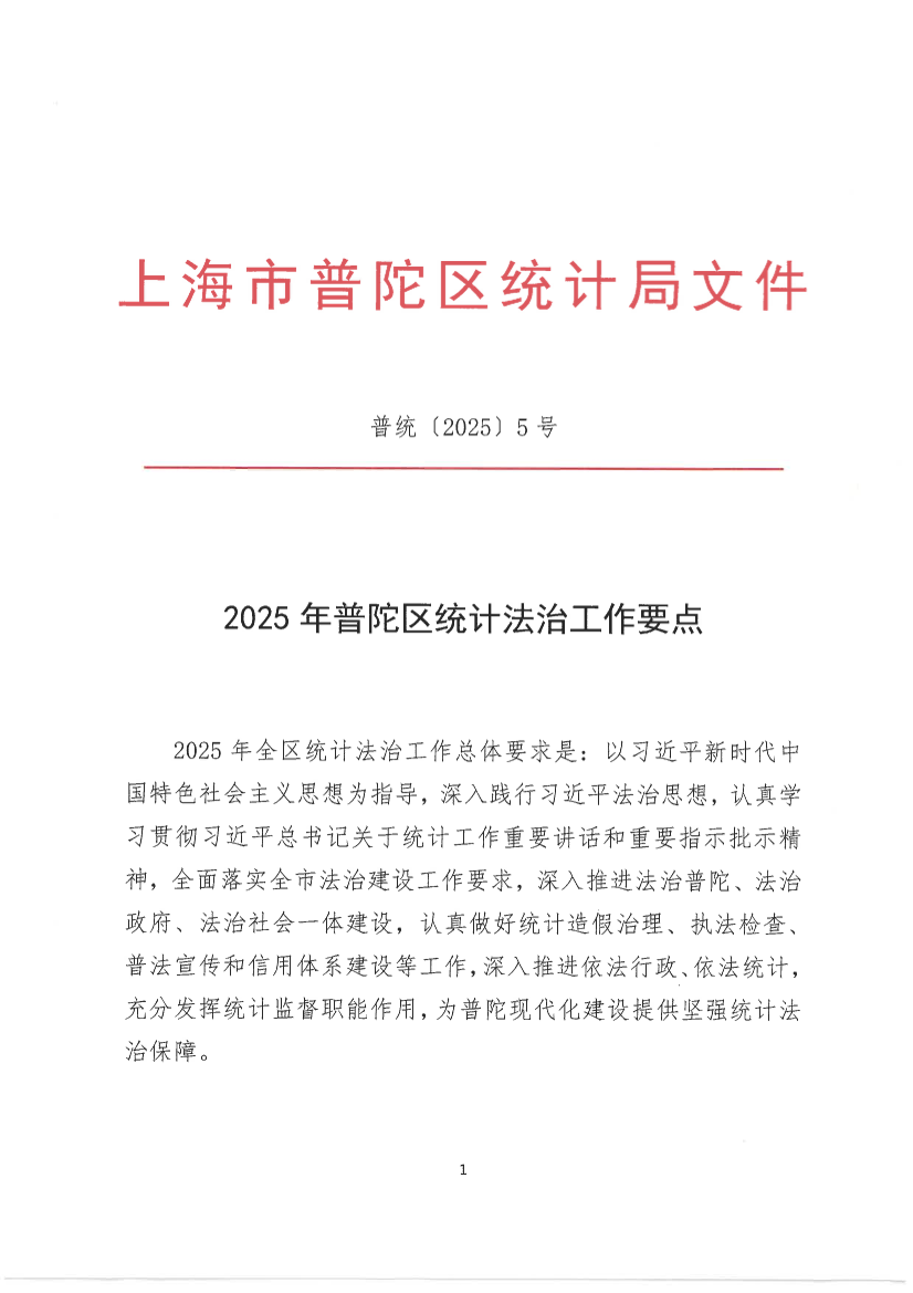 2025年普陀区统计法治工作要点