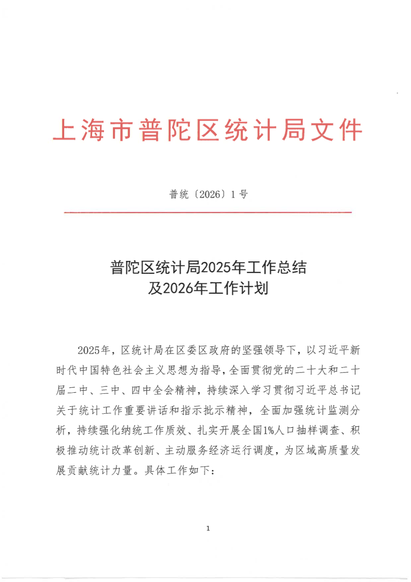 2026年是“十五五”开局之年,区统计局坚持以习近平新时代中国特色社会主义思想为指导,全面贯彻党的二十届四中全会精神,巩固中央八项规定精神学习教育成果,树立践行正确政绩观,深刻领会习近平总书记关于统计工作重要指示批示精神。切实抓好“党建工作提质年”各项工作落地见效,紧密围绕服务区域经济社会发展,持续加强统计监测分析,提升统计监督效能,推动统计改革创新,为建设“协同创新活力区,半马苏河品质区”贡献统计力量。