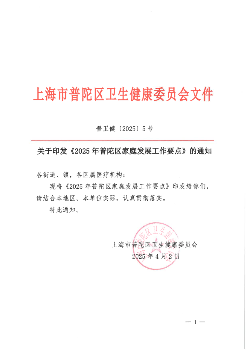 关于印发《2025年普陀区家庭发展工作要点》的通知