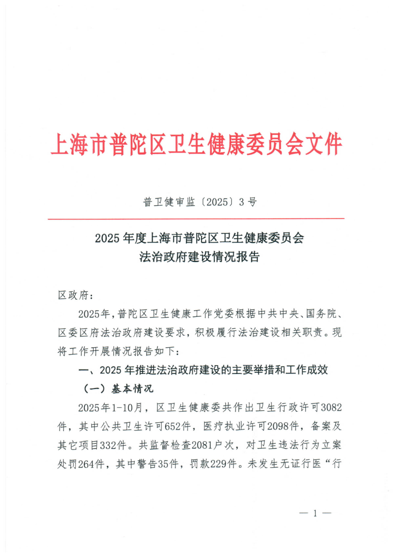 2025年度上海市普陀区卫生健康委员会法治政府建设情况报告