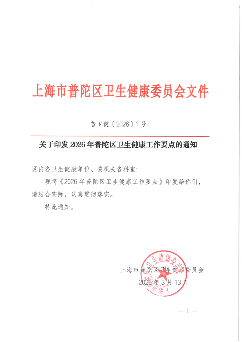 现将《2026年普陀区卫生健康工作要点》印发给你们,请结合实际,认真贯彻落实。