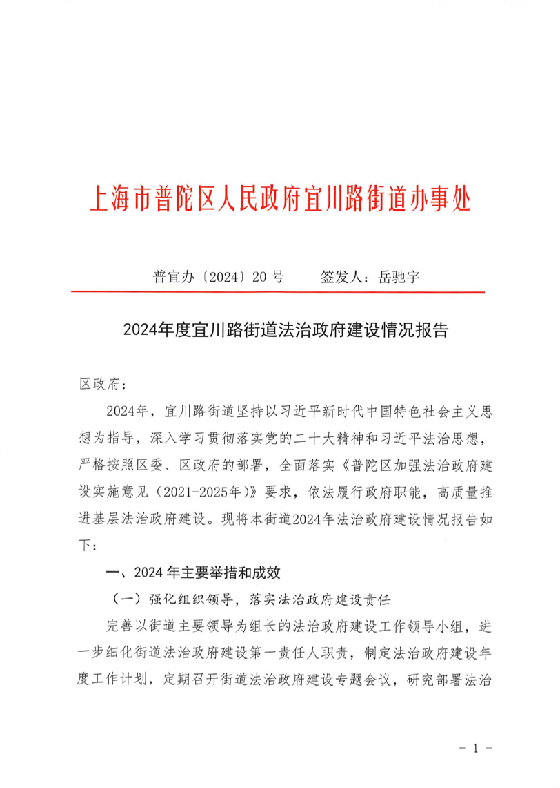 2024年度宜川路街道法治政府建设情况报告