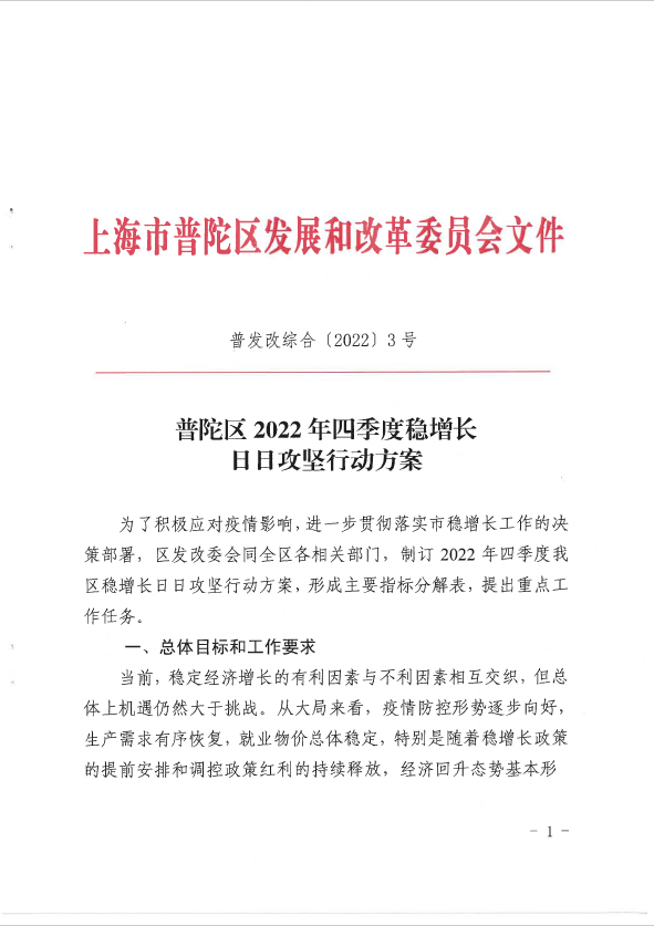 普陀区2022年四季度稳增长日日攻坚行动方案