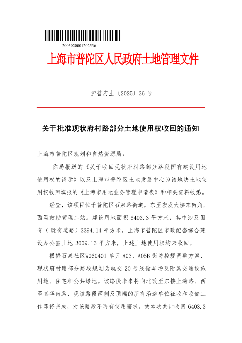 沪普府土〔2025〕36号