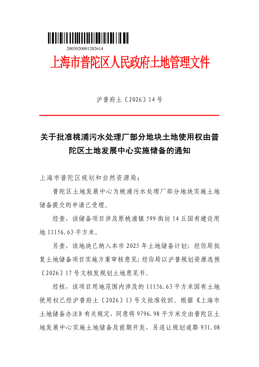 沪普府土〔2026〕14号