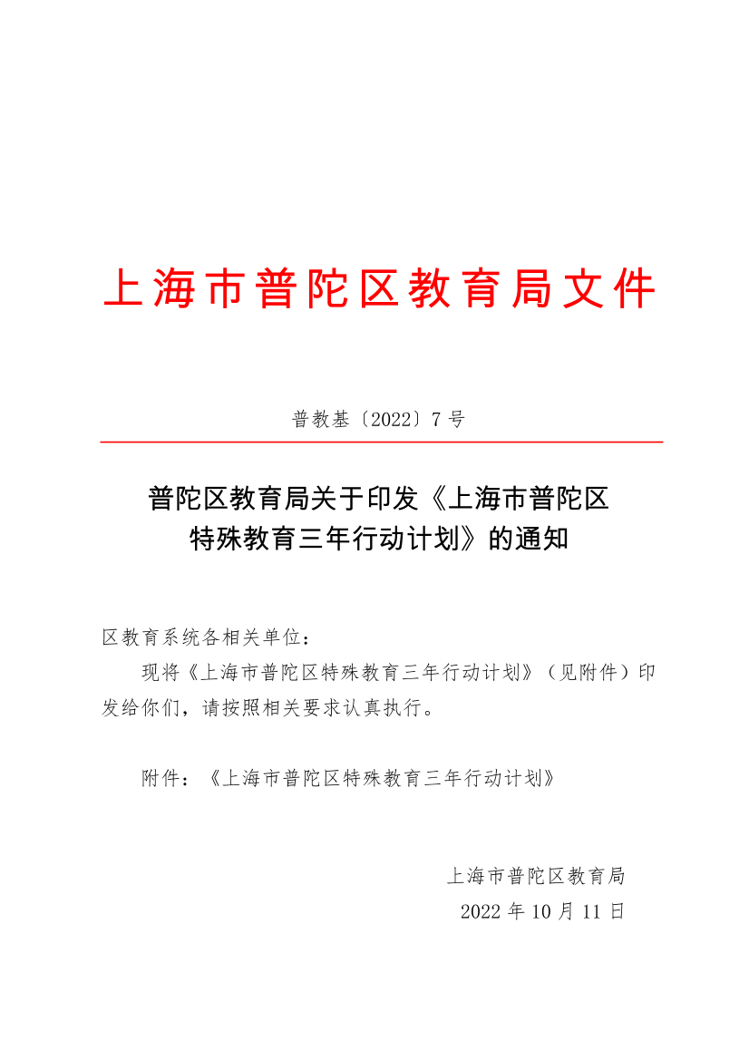 关于印发《上海市普陀区特殊教育三年行动计划》的通知